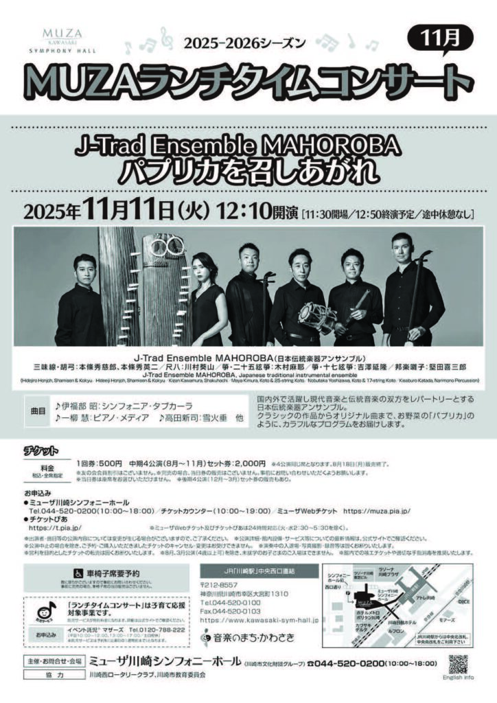 MUZAランチタイムコンサート 11月 J-Trad Ensemble MAHOROBA パプリカを召しあがれ [2025年11月11日(火)]