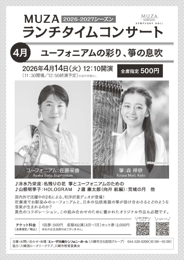 MUZAランチタイムコンサート 4月 ユーフォニアムの彩り、箏の息吹 [2026年4月14日(火)]